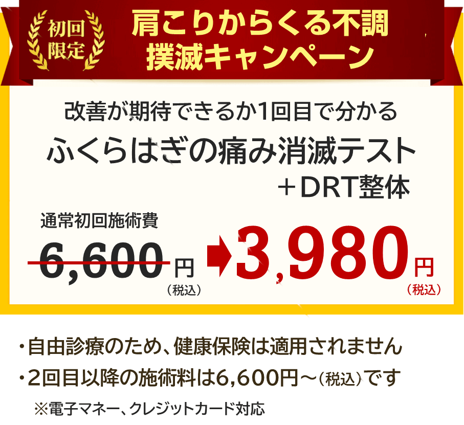 あなたには、まずDRTでふくらはぎの痛みが消えるかどうかのテストを受けて頂きたいと考えています。