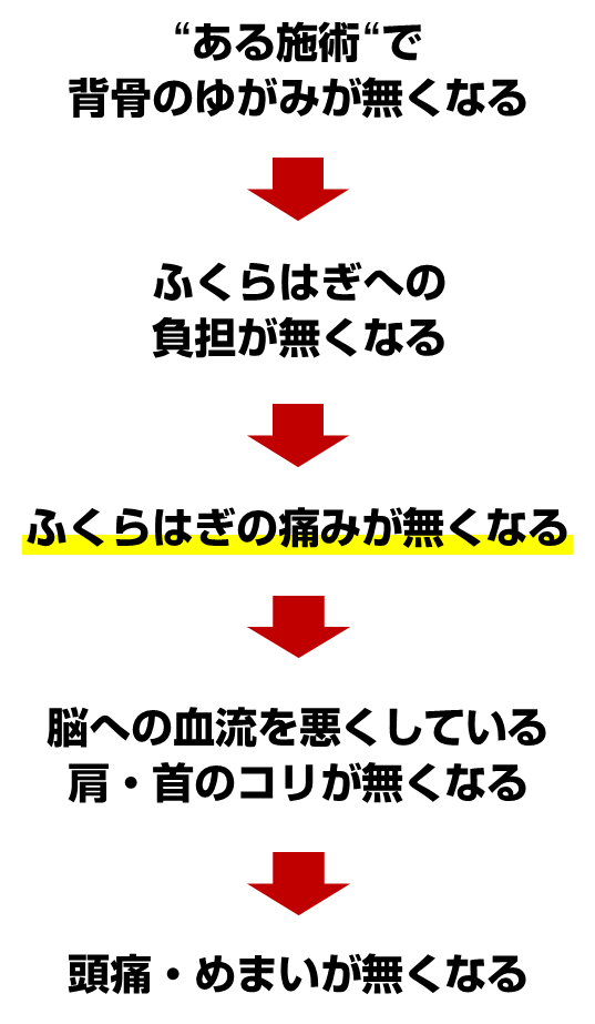 ここでふくらはぎの痛みがとれていれば、まだ頭痛やめまいが残っていたとしても、2~3日経てば自然とおさまってきます。